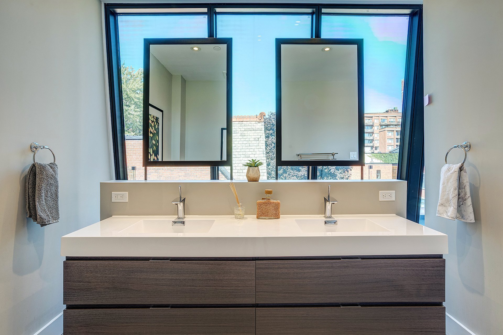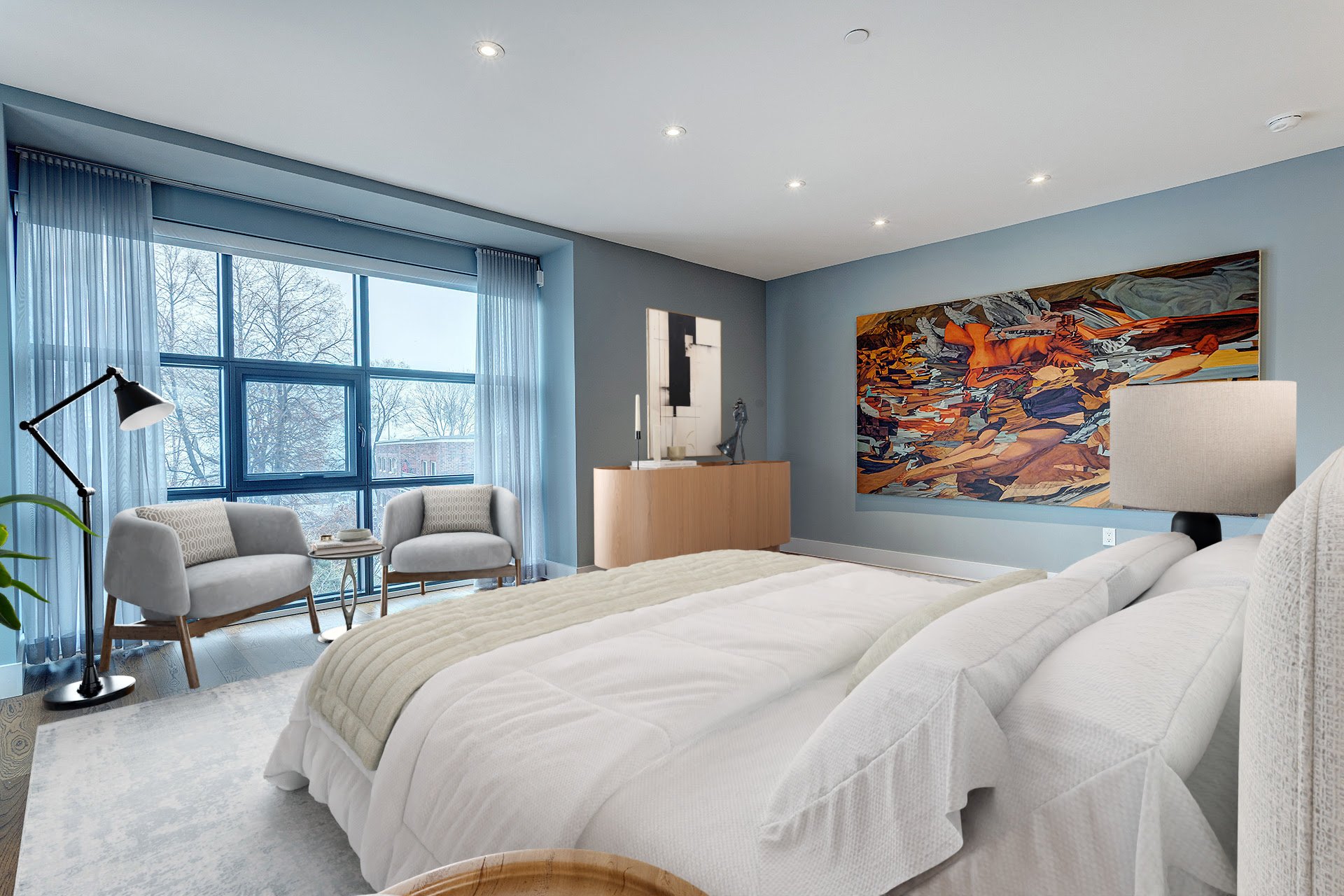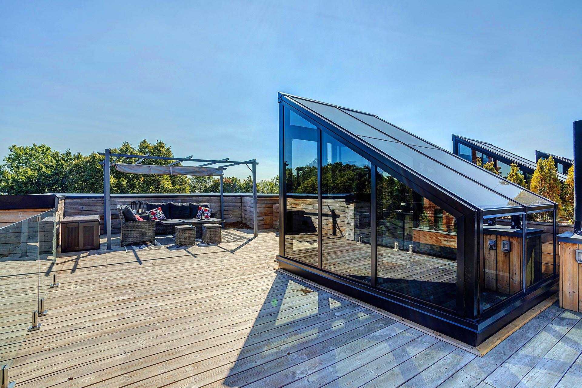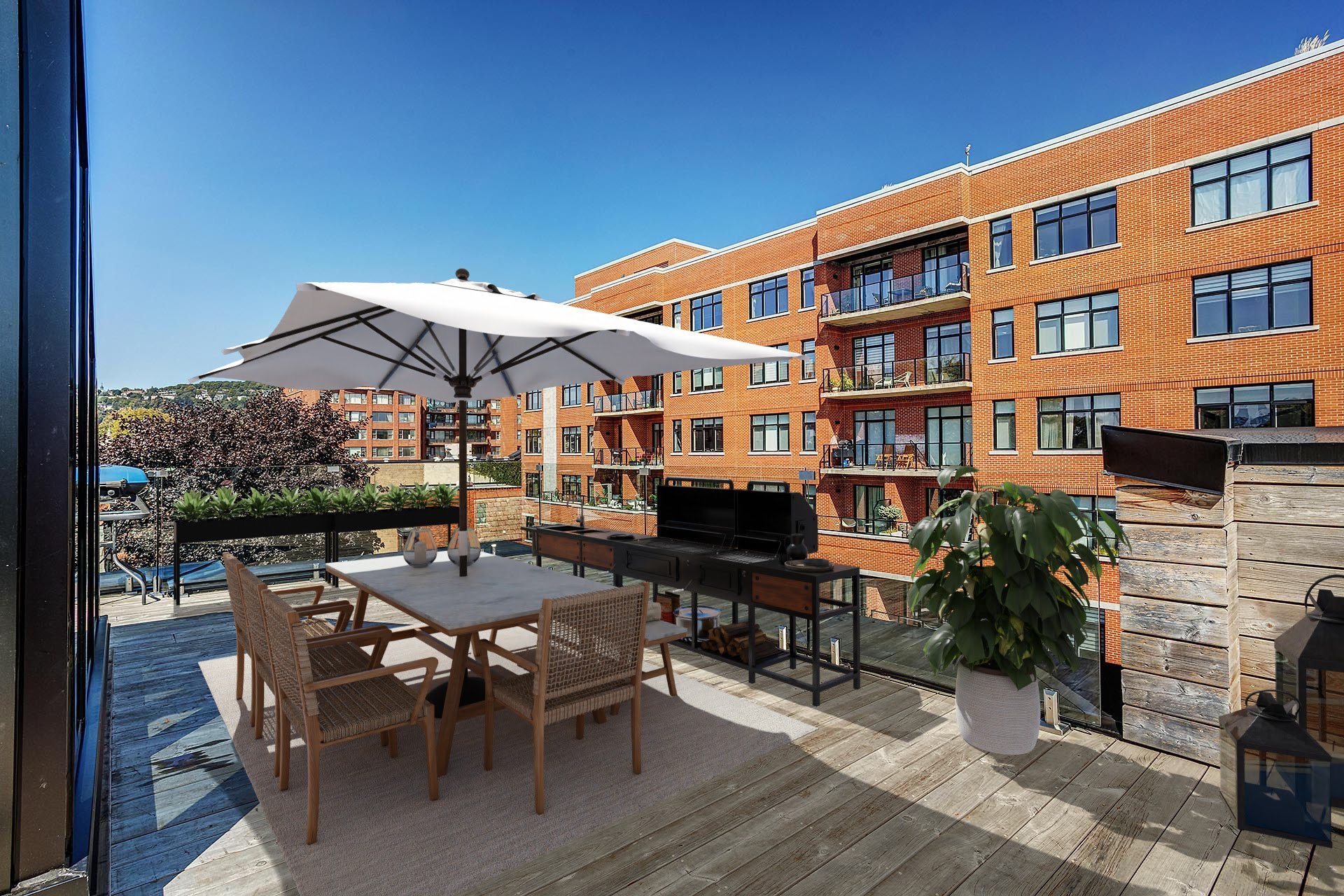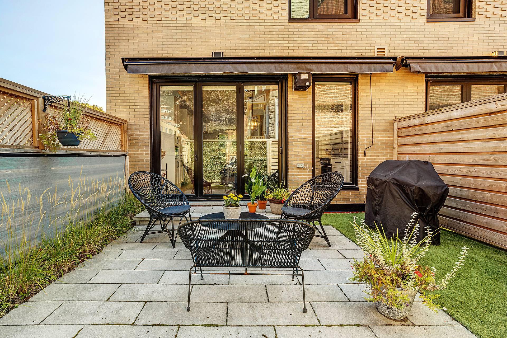 Elegant corner townhouse featuring 3 bedrooms, including a spectacular primary suite occupying an entire floor, 2 bathrooms and a powder room. Bright interiors with generous windows, open kitchen leading to the garden, balcony, private rooftop terrace, and refined high-end finishes. Finished 9.5-foot basement with family room and direct access to a double garage. A rare opportunity in the heart of Westmount, steps from parks, top schools, and downtown.